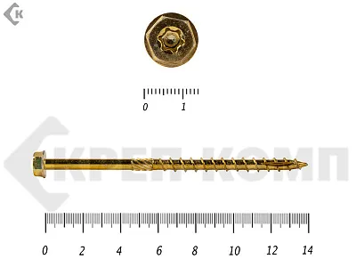 Саморезы по дереву желтые, шестигранные Torx 8х220 мм КРЕП-КОМП (50 шт)