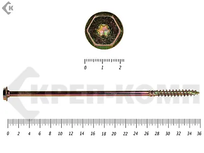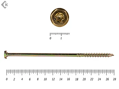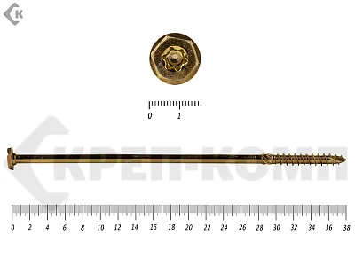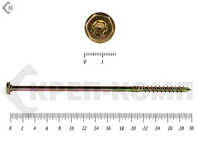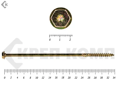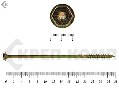 Саморезы по дереву желтые, шестигранные Torx 8х260 мм КРЕП-КОМП (50 шт)